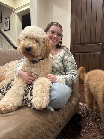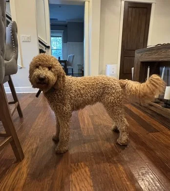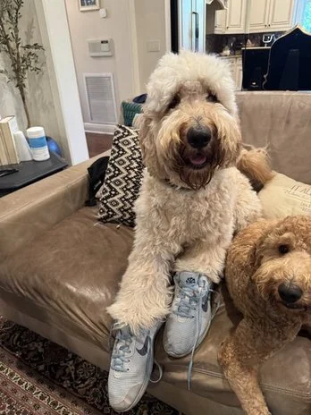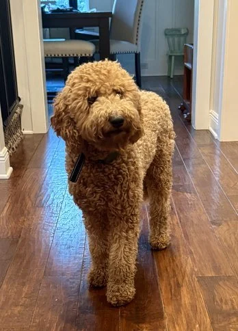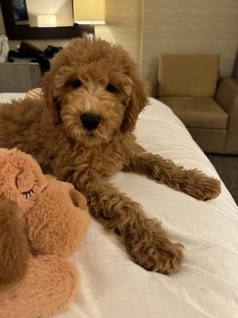Our Goldendoodles typically range from 45-70 pounds when fully grown, depending on the specific breeding line and genetics.